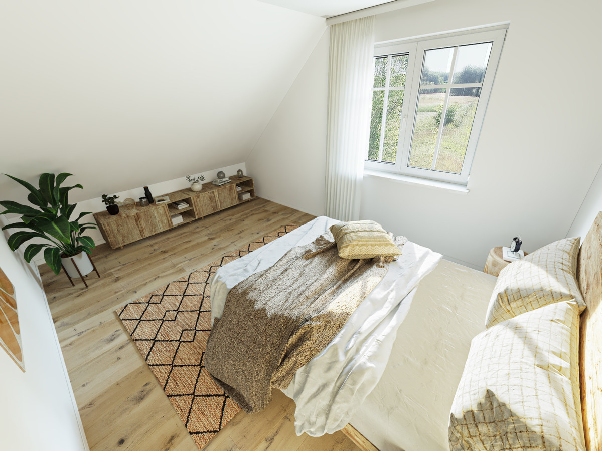 Mit drei! Schlafzimmern bietet die Doppelhaushälfte ausreichend Platz für Familien oder Paare, die zusätzlichen Raum benötigen.