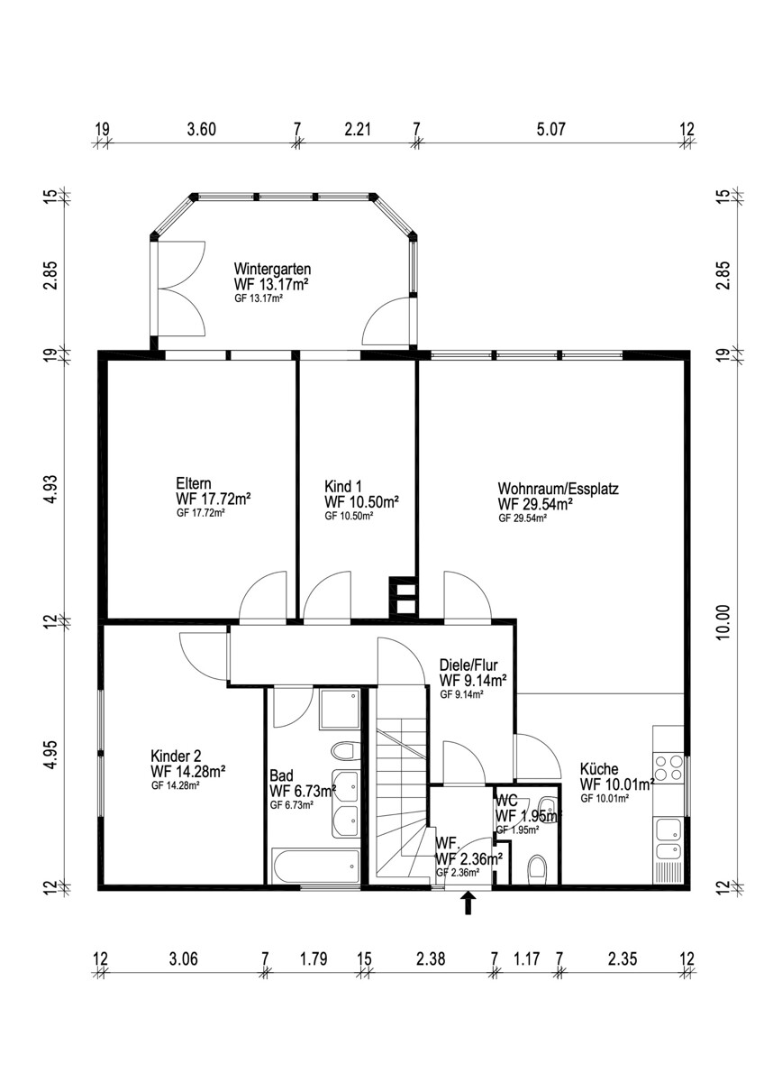 Raumaufteilung mit Weitblick: Im Erdgeschoss erwarten Sie neben Küche und Bad zwei Zimmer, die sich ideal als Homeoffice eignen und Zugang zum Wintergarten bieten. Im Obergeschoss finden Sie drei weitere Schlafzimmer und ein zweites Bad. Und wenn das noch nicht reicht: Der hohe Dachboden bietet Ihnen eine fantastische Ausbaureserve.