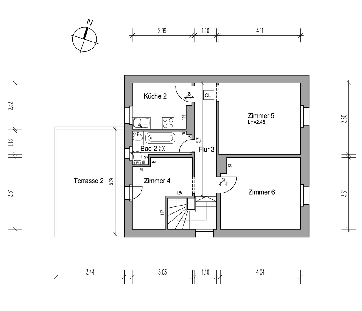 Raumhöhe: Großzügiges Volumen durch 2,76 m im EG, 2,48 m im OG und 2,23 m im Keller.
