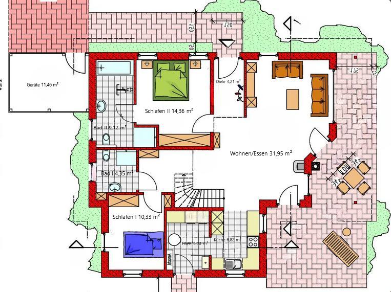 Bäder: 3 tagesbelichtete Bäder (1x Wanne/Dusche, 2x ebenerdige Dusche)
