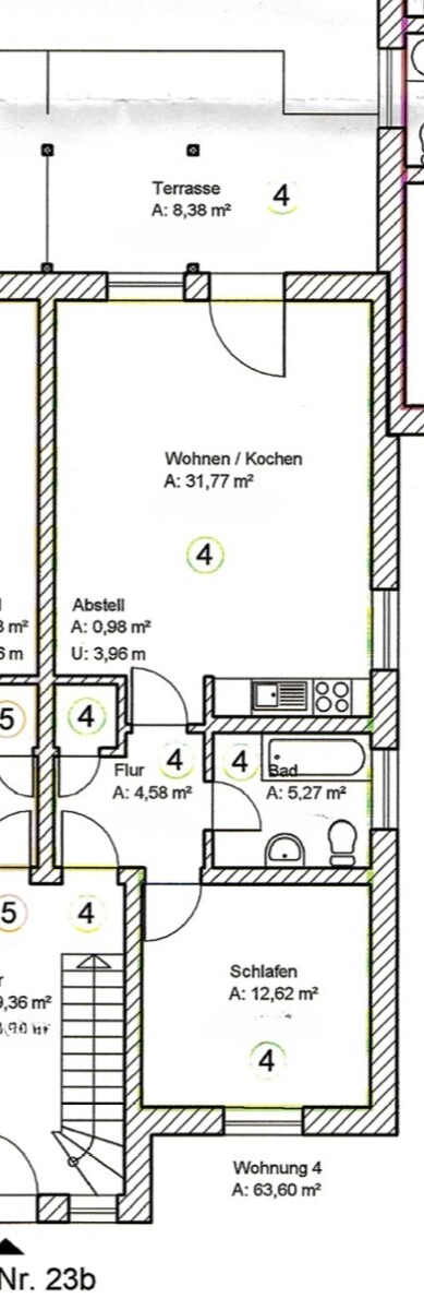 Der großzügige Wohnbereich mit Essplatz lädt zu gemeinsamen Momenten ein, während die voll ausgestattete Einbauküche mit hochpreisigen Elektrogeräten kulinarische Träume wahr werden lässt. Die Räume sind hochwertig gefliest mit feiner Fuge, was Eleganz und Pflegeleichtigkeit vereint.