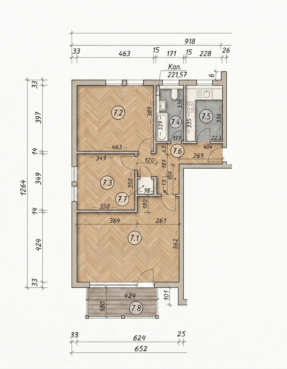 Die 85 m² Wohnfläche verteilen sich effizient auf drei helle Räume und funktionale Nebenflächen:
