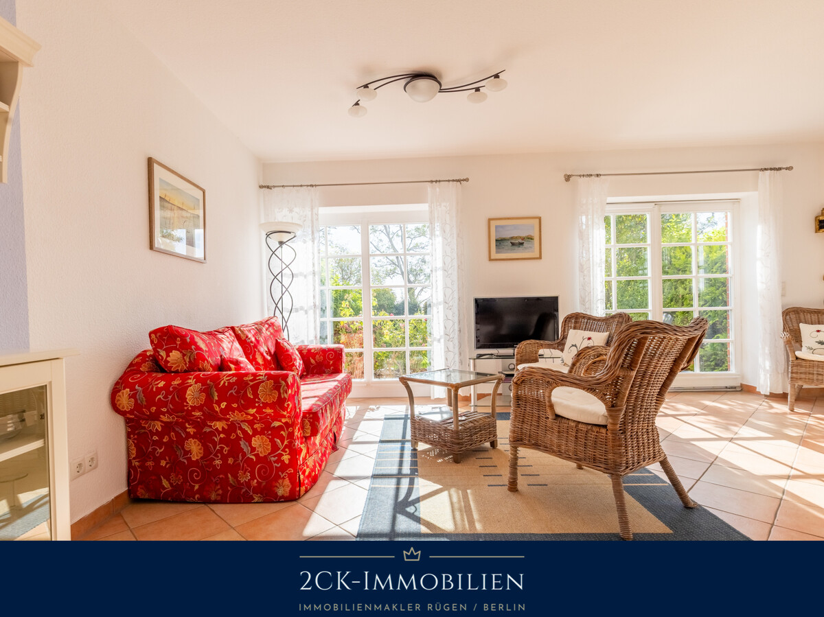 Auf 58 m² verbindet sich stilvolle Behaglichkeit mit einer himmlischen Lage und einem traumhaften Blick auf den Bodden und die Zickerschen Berge.
