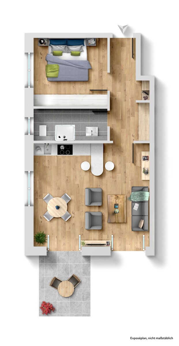 Der lichtdurchflutete Wohn- und Essbereich empfängt Sie mit Wärme und Offenheit. Eine hochwertige Einbauküche fügt sich harmonisch in das Raumkonzept ein und lädt zum gemeinsamen Kochen und Genießen ein. Die Ausstattung ist vollständig und mit viel Liebe zum Detail gewählt – einziehen, ankommen, aufatmen.